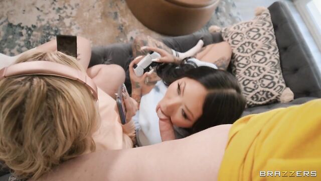 Description:Connie Perignon and Hot Ass Hollywood are in the living room relaxing, gaming, and scrolling on their phones. But when Jimmy Michaels comes to the fridge looking for a snack, he catches a glimpse of Connie's sweet, tight pussy. Jimmy can't help himself and starts jerking off behind the unsuspecting women. Finally, tattooed Connie and big-titted Hot Ass Hollywood catch the little pervert and put him to work! Jimmy thinks he's living out a real-life fantasy, but the women are less impressed, fucking Jimmy as they scroll on their phones and continue to play video games. Jimmy better bring his A-game because, although eager to cum, these two thicc goddess are hard to impress!