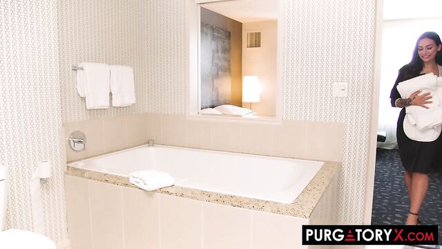 Beschreibung: News travels fast amongst horny chambermaids as Charly Charly Summer tells her sexy coworker, April April Olsen , about the dreamy guest Michael Vegas in room 1701. That’s all April needs to hear. When she brings Michael his requested towels, she bares her beautiful breasts and asks him, “is there anything else I can do for you… or maybe to you”. That’s an offer he can’t refuse. A