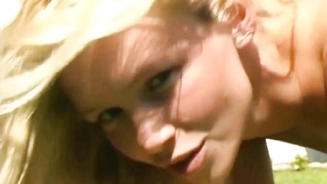 Beschreibung: A horny auto mechanic caught this slender blonde teeny sunbathing topless and masturbating right on a bench in her backyard. Oops! She was shocked to say the least, but extremely horny too. He showed her his big firm cock and she was awed to say the least. She loved it so much she wanted to take it in her mouth immediately. She sucked it good and let the guy fuck her right there enjoying a powerful orgasm and taking a facial cumshot.