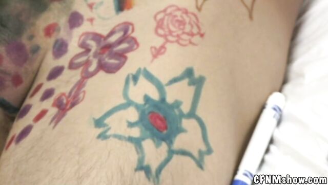 Beschreibung: Hi everyone! Today we are going to experiment with Man bush and shaving them down so we have something to work with. After we shaved him down smooth, we took some markers and drew all over his body, it was so much fun! I decided to give him a treat with a little blowjob and fucking action at the end, he deserved it!