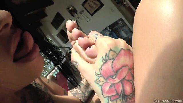 Beschreibung: Director John 'Buttman' Stagliano dotes on four delectable foot models, inspecting their toes, arches and soles, both in and out of platform stripper shoes. Voluptuous Virgo Peridot, Asian-American beauty London Keyes and naturally curvy Italian Valentina Nappi display their adorable peds, teasing Buttman as his roving camera examines each girl from her wiggling, painted piggies up to her muscular calves. Tattooed showgirl Alby Rydes sucks her own toes and her feet stroke a dildo.