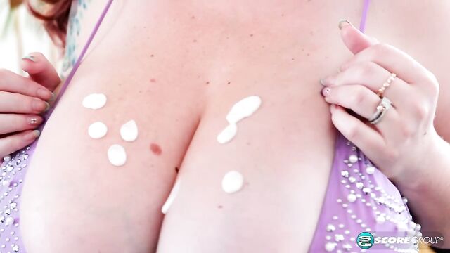 Beschreibung: Very special. An incredible hands-on breast massage with white lotion rubbed in. It takes a lot of cream to cover Demora's amazing boobs so we stocked up.
