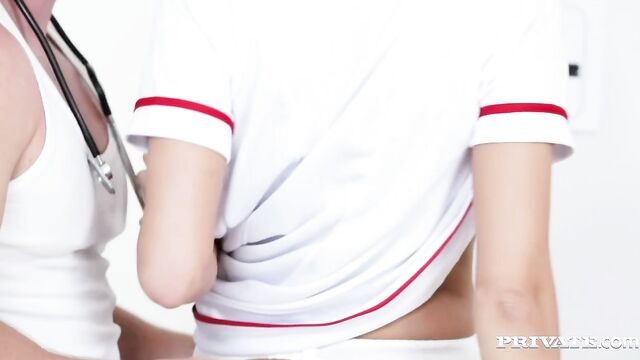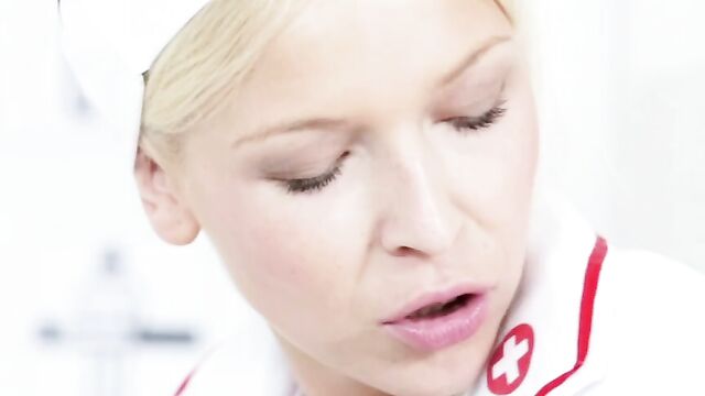 Description:Karol Lilien is a sexy blonde nurse and she gets her patients heartbeat racing by stripping down and showing him her young perky tits. This slut spends no time messing around, she lifts up her nurse uniform, bends over and takes a doggie style pounding from her patient’s big dick. With her pussy satisfied, she sits her patient down and wraps her big lips around his cock, giving him a blow job packed with deep throat. Once she’s had a mouthful, this naughty nurse climbs on top and fucks the brains out of her man. Then, she spreads her legs and takes a blasting to the cunt while screaming, gripping on to the bed and letting her natural tits swing to the thrusts. Karol Lilien then shoves her face into the pillows and has her pussy trashed from behind before taking a hard spank filled spoon fucking. This babe knows how to finish, she gets to her knees to suck the cum out of his cock and then waits for her facial finish.