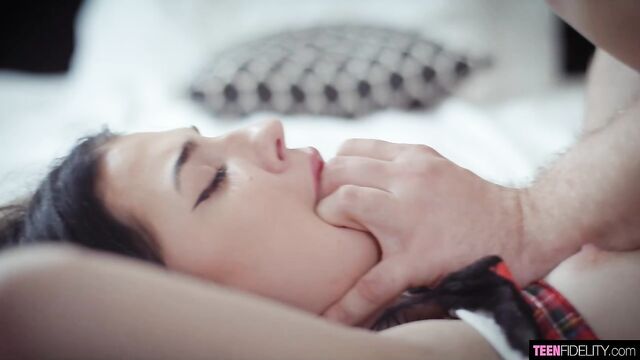 Description:Chloe is giving naughty schoolgirl vibes in her too-short plaid skirt and knee-high socks. Her matching thong gets pushed to the side so you can get a good look at her tight, teen pussy. She lives up to her look, ready to get fucked hard and covered in cum.
