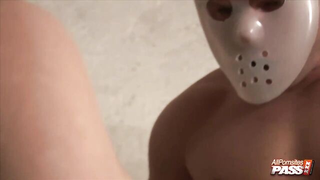 Description:Sabrina White is the kind of woman who's not afraid to try anything. She's the pretty blonde girl who meets up with two masked guys in what looks like an abandoned building and decides to hook up with them. You'll get to watch her suck and fuck two guys at once and get her holes sprayed with cum.