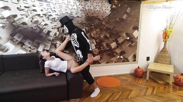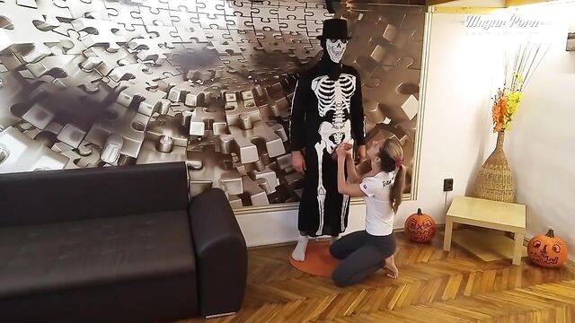 Description:Scary Mugur thirsty for orgasms fucks Gina Gerson after she sees Mugur's Halloween costume. She feels unsafe and starts a blowjob for him just to calm down his monster. After all, Gina gets horny and she continues for a missionary fuck and much more. The scene gets out of control and Mugur takes Gina over him to get all things done correctly.