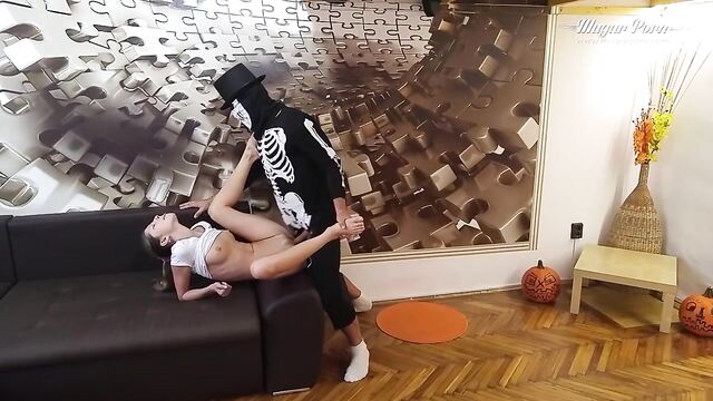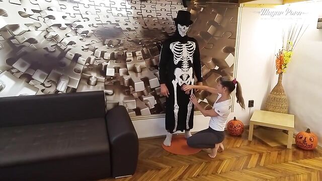 Beschreibung: Scary Mugur thirsty for orgasms fucks Gina Gerson after she sees Mugur's Halloween costume. She feels unsafe and starts a blowjob for him just to calm down his monster. After all, Gina gets horny and she continues for a missionary fuck and much more. The scene gets out of control and Mugur takes Gina over him to get all things done correctly.