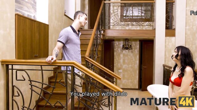 Spielzeuge Clip mit aphrodisierender Angela MILF und Willy Regal von Mature 4k