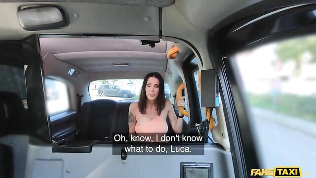 Description:Today I picked up this stunning brunette who was looking for her husband. Shay Sights suspected her partner was cheating on her, and she wanted to catch him in the act. When we finally located her husband, Shay was upset to see him with two pretty European ladies. After parking the Fake Taxi, I joined the tattooed babe in the backseat and comforted her. I pulled aside Shay’s thong and started playing with her pussy, and then she returned the favour by sucking and slurping on my long, thick cock! She wanked me off between her big juicy titties before planting her tight snatch down on my lap and riding me cowgirl-style. Afterwards, I banged the horny MILF in missionary position, and then we did some spooning in the back of the cab. To finish, I fucked her from behind doggystyle, and then I spanked Shay’s curvy ass before pulling out just in time to leave her with a sticky facial!