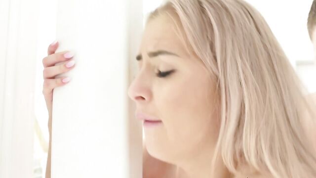 Description:Standing beside the condo's grand bay window, Cayla Lyons is watching dawn break across Prague when husband Ricky Fortex sneaks up behind her. Embracing the petite blonde, he showers her with little kisses and sweet caresses. Still rosy with newlywed bliss, the couple can't resist a morning quickie. After Ricky gives Cayla a pussy-licking orgasm, she pleasures his thick cock in a POV blowjob. Then, spinning his pretty wife against the glass, the Czech hunk thrusts inside her tight pussy for a raunchy fuck that their neighborhood voyeurs won't soon forget!