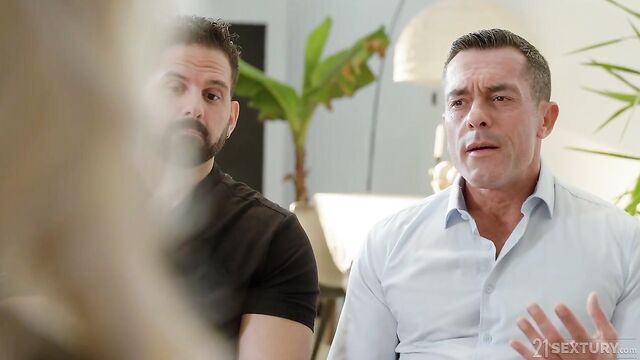 Beschreibung: Sensual therapist Shalina Devine has a solution for Lorenzo and Renato's maturing libido problem. The busty MILF will take care of the two men by letting them fill all of her tight holes... two dicks at the same time!