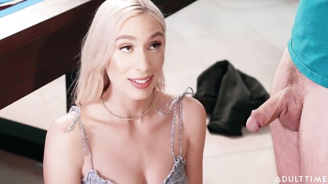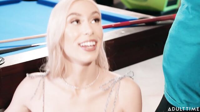 Beschreibung: Kay Lovely is playing pool with her date, Robby Echo. Kay's roommate Paige Owens sees them having fun, and asks if she can join in. As the game becomes increasingly competitive, Paige offers to make things more interesting by saying that if she makes the next shot, she gets to take her shirt off. Paige successfully makes the first shot, so she takes her top off... and she's NOT wearing a bra underneath!Kay is surprised, saying she didn't think Paige would actually do that. But Paige says that turning this pool game into 'strip pool' sounds extra fun, so why not? Robby and Kay end up agreeing, so the game continues, and before long Robby ends up losing his pants and then his underwear. Kay suggests that maybe she and Paige should change the game into a competition over Robby's dick, so they start sucking on his dick and balls. Next, the ladies get fully undressed for even MORE fun. Pool is great, but it looks like they've found something better!