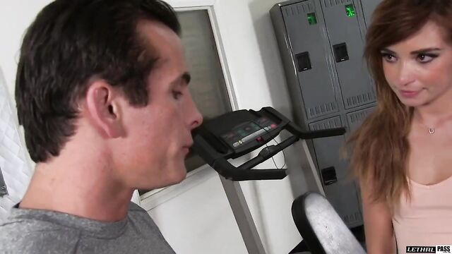 Beschreibung: Kaylee had a boyfriend she promised to be faithful to, but he was gone on business for the next month. As long as the dick doesn't go in, is it really cheating? She found a guy at the gym and started talking him up. He was easy to convince, even though she was honest about having a boyfriend. Guys never care. She took of her pants, pulled her panties to the side and let him see. She kissed her neck, and she grabbed his hard dick. She took off her top, bent over and let him taste her from behind. She opened her legs up and he went to work, making her twitch with every move. She sucked him until he came in her face, cum running down her hair.