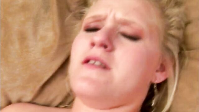 Beschreibung: Chubby blonde gets filled after having a hot rough fuck with her boy.