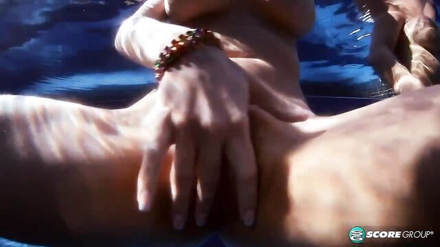 Beschreibung: One day, nations will get along as well as Romanian Lana Ivans and Ukrainian Valory Irene. Valory beckons Lana to get off the raft and come to her. Lana scoots off it, her balls-on-a-string toy still inside her pussy, and bobs over to Valory. The Big Tit Skinny Dip underwater camera is ready to capture their aquatic fling.