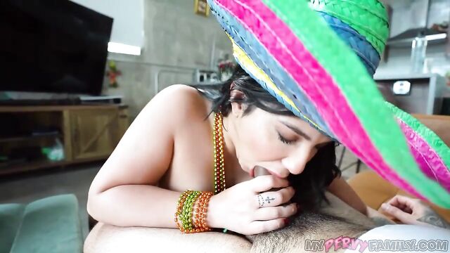 Description:Anais Amore loves Cinco de Mayo! She gets all decked out in beads and a hat and the tiniest shorts that expose her big, beautiful ass and heads over to her step-cousin Zeus' place. She even has a costume for him! But Zeus ain't no dummy. He knows his step-cousin Anais just wants to use him for his car to drive her to a party later. Anais is willing to make a deal. She takes off her top and shows her step-cousin her perky tits. She gets on her knees and makes an offer - she will have sex with her step-cousin Zeus if he will drive her to the Cinco de Mayo party later. Zeus is in and his cock comes out and slides right into his step-cousin's mouth. She bends over and spreads her big ass, Zeus begins to fuck her from behind. Anais twerks her lovely ass over her step-cousin's dick. She rides him, making herself cum hard while she is on top. Zeus porks his step-cousin's wet pussy until he pulls out and cums in her mouth. Anais swallows like a good girl and is ready to go party! Happy Cinco de Mayo, folks!