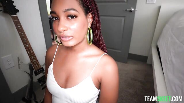 Description:Addis, an art student with a knack for urban interventions, usually manages to create her work without much trouble. However, today this ebony beauty gets caught making graffiti on private property. This could turn out really badly for her, but fortunately, the property owner has a side business that might offer a perfect solution to their problem. It turns out he's an erotic photographer, and if she's willing to do some modeling for him, not only would she get out of this situation, but she might also earn some good money! After all, she is an art student, right? Intrigued by the potential earnings, she asks how to make the most of this opportunity. Soon enough they start talking about fucking on camera and Addi’s so excited she wants to know all the details of how he plans to do the scene! But doing is better than talking, so he takes her to his place, and in no time she’s on her knees gagging on his cock while she stares at his camera with the naughtiest look on her pretty face. She takes her clothes off finally revealing her thick beautiful body and spreads her legs so he can pound her little black pussy on the bed. She turns around so he can spank her big beautiful ass while he stuffs her full of cock. Addi’s so horny she rubs her pussy with a vibrator while she looks into the lens and waits for her reward: her beautiful face covered in cum! Like she said, it definitely makes her look prettier…