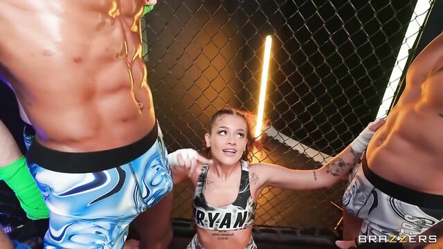 Description:Ryan Reid has been on a roll since being crowned the new ZZ MMA champion. She's become a little bit cocky and proclaims she's ready to take on all her challengers... at once! Victor Ray, Sly Diggler, Scotty P, Nick Strokes and Hollywood Cash are eager to put her skills to the test... and put the "cock" in "cocky"! Once the bell rings it's five against one, but Ryan's unfazed, ready to take them down and take all their big loads in her very first action-packed blowbang!