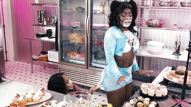 Description:The tension is palpable as influencers May Hashira and Jenna Foxx start their dessert mukbang video. Jenna seems annoyed, for some reason, and when May gently teases her that she can fit more donut in her mouth, she shoves one between May's lips! This mukbang turns into a food fight, and soon the hotties are kissing and licking frosting off each other. Jenna is still bossy as she licks May's pussy and uses a vibrator on her, then it's her turn to be the sweet treat for May to taste. The babes cum as they trib around the vibe, only then realizing they're still recording!
