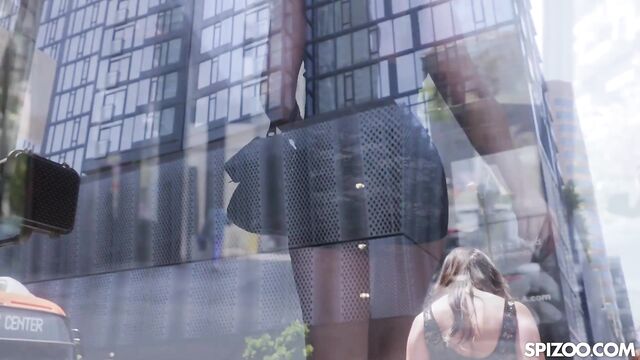 Großer schwarzer Schwanz Clip mit biegsamer Jax Slayher und Scarlett Alexis von Spizoo