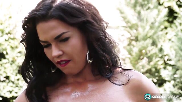 Beschreibung: Hot babes and cool bikes go well together. We have sexy brunette Chloe Lamoure. We have the bike. The weather is cooperating. Chloe changes into a tank top and denim shorts. She sponge-bathes and hoses down her busty body more than she does the bike. And that's fine with us. Chloe pulls off her wet clothes and finger-bangs her pussy while sitting on the bike.