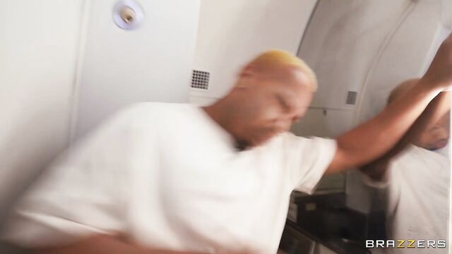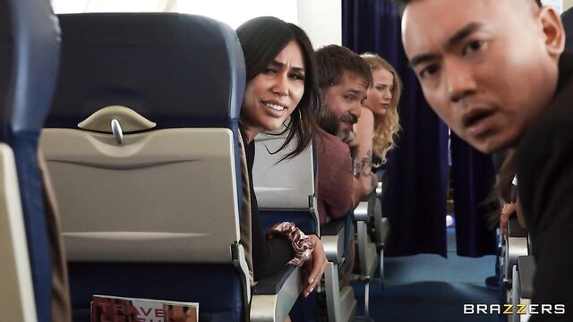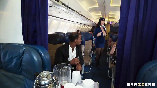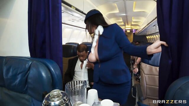 Description:After fucking her way through airport security, Angela White steadies herself to greet boarding passengers. However, she forgets to clean some of the cum off her face, which everyone notices but only Mazee is suave enough to point out. During drinks service, Mazee opts against pretzels in favor of showing Angela his hard cock, which she accidentally, but happily, sits on during a bout of turbulence. After a rocking, shaky romp that sneakily moves to the back area, Angela runs into Ricky Johnson, who was using the bathroom! When it comes to Angela, this flight attendant truly does fuck, because soon enough she’s joining the Mile High Club, juggling Mazee and Ricky and their massive cocks. From there, everyone adds a few bonus points to their frequent fuck miles, all in time for Angela to get back in the mix for meal service.