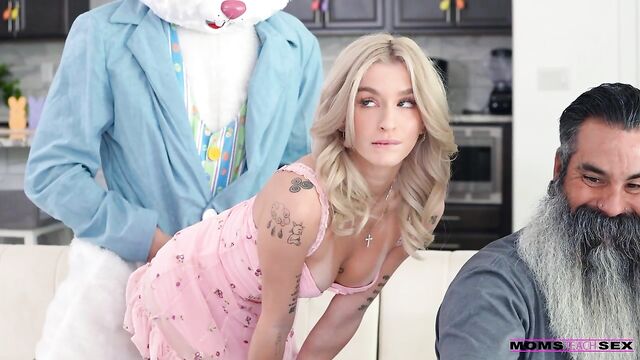 Description:Whitney Oc and Joe Daddy are hanging out with their stepkids Emma Rosie and parker Ambrose dying Easter eggs. The stepfam is really in the Easter spirit, going so far as to hire an Easter bunny actor to take photos with them. Parker intercepts the bunny and pays the actor off so he can wear the costume and fool around with his adopted sister Emma while they're doing the group photos.Unbeknownst to Whitney and Joe, Parker begins banging Emma from behind during the photoshoot. Emma tries to hide what's happening when the photos abruptly stop so Joe can take a work call. Whitney figures it out almost immediately, and although she's initially ticked she changes her tune when she sees what a nice cock it is. Even after it's revealed that the bunny is Parker, Whitney decides to show her stepkids the ropes.They begin with a double BJ as Emma learns from Whitney's experience. Then Emma watches as Whitney enjoys a sitffie ride in reverse cowgirl. Whitney gets Emma on her back so she can show Parker how to dick her down. On her knees, Whitney demonstrates doggy while eating Emma out. The two girls help Parker pop all over them with a joint handie just as Joe walks back in and wants to know what the fuck is happening.