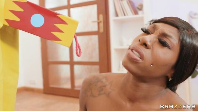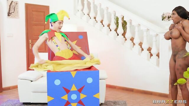 Description:Ebony Mystique's bath is interrupted by an unexpected delivery. Mystique is at first confused by the large mystery box, but quickly figures out that she's dealing with the latest sex toy sensation... a Jordi in the Box! Mystique didn't ask for this Jordi in the Box, but now that it's here, she knows how to use it; first sucking Jordi's cock, then letting him give her a good fuck.