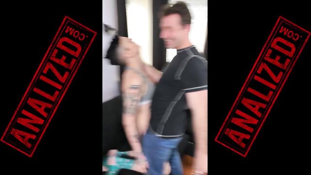 Beschreibung: Sexy lesbian couple Nikki Hearts and Leigh Raven is a big fan of James Deen. Leigh bets on the camera that she will let the king of rough porn fuck her wife in the ass if he would see them in person. The thought of having to finally meet their idol made the tattooed girls excited. The two decide that they need to prepare Nikki’s tight asshole if James Deen is really coming over. James Deen always loves interacting with his loyal fans. When he heard that two fans want to meet him, he quickly comes to visit. James smiles wildly as he enters the door. He doesn’t want to waste any time. James wants to get their end of the bargain. The two share a deep passionate kiss before going down on Nikki’s pussy. He eats her pussy while sticking a glass toy into her ass. Nikki moans softly as James tries to jam the toy deep in her ass. It takes a while before the buttplug is finally one of Nikki’s anal cavity. After eating her pussy, James lets Nikki suck his cock. The sight of her wife fucking their idol is too much to resist. Leigh joins the fray. The lesbian couple shares his cock. Leigh spreads her partner’s mouth while James fucks Nikki in the mouth. The girls continue deepthroating his massive cock. The sloppy blowjob lubed up his penis. This made it easier for James to stick his cock into Nikki’s tight asshole. He slides his cock in and out of her asshole while aggressively rubbing her cunt. The two continue to fuck each other. Nikki squirts every time she reaches orgasm. James continues to pound her ass. Her pussy juice gushes out uncontrollably every time she cums. Leigh constantly joins in the action, licking her wife’s pussy juice. Nikki and James continue their anal session. They have sex in different positions. Her tight asshole gapes widely each time James pulls out his cock. He continues to fuck her in the ass until he feels like he is about to cum. He shoots his cum all over her tiny body.