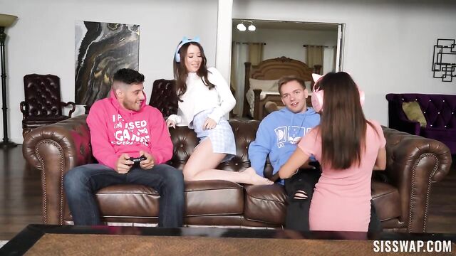 Description:Charly and Mickey are hogging the game console and won’t let Billy or Joshua play for even a second. To settle the score, the group of stepsiblings strikes up a deal, and whoever gets the highest score in the game receives the console for the rest of the day. After Billy and Joshua win by a landslide, they get the bright idea to set a bargain — if Charley and Mickey let them fuck, they can have the console for the whole month.