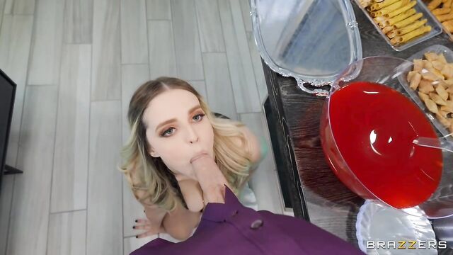 Beschreibung: It's a party, and Oliver Flynn has no idea what he's walking into. Cori Vore spies jealously while Kate Dee flirts with him right in front of her aloof hubby. Codi ups the ante by pulling her tits out and serving them up on a platter just for Oliver. Oliver tries to put away her jugs and move on to mingling. Codi has other plans and Oliver ends up joining the party with his pants around his ankles. When Oliver runs off on both ladies slutty advances, Kate lets Codi play with her pussy under the plates. Codi’s fingers get stuck inside Kate, forcing a sneak away to a bedroom. Oliver ends up in the bathroom with Jazmin Luv, who sees his hard on and gets straight to sucking. Oliver stumbles out of the bathroom and into the bedroom, really just trying to get his pants on, where he finds Codi and Kate deep in mid-scissor. For this, his pants come fully off and a threesome it is.