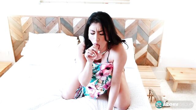 Beschreibung: Selena Adams checks out her sexy body in the bedroom mirror. Selena likes how her sweet big tits and equally sweet ass look in her new dress, which is designed to reveal lots of cleavage. Selena's waiting for her girlfriends to pick her up so they can go out for brunch at some swanky South Beach restaurant, turn a lot of heads and make traffic slow down. A Miami girl, Selena is excited to hit the town and feels herself getting wet and tingly. While she waits for her girls to call and tell her they're ready, she feels the urge to cum. She takes off her dress and thong panties and gets into bed for a quickie. Reaching behind a pillow, Selena takes out a big fuck-toy and pumps her creamy, pretty pussy. A lot of girls shop for their bedroom sets at stores that include sex toys as free accessories. As horny with breast play as she is twerking her sexy ass, Selena goes deep with her cock-shaped dildo. Her pussy is soaked and creamy as she fucks herself in different positions and cums with a contented sigh. Just in time, too, because her girls will be coming soon...but not the way Selena just came.