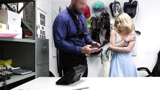 Description:Security officer Justin brings young blonde Chanel to the backroom after catching her trying to steal a laptop. Chanel tries to act all innocent and says that her friends made her do it, but officer Justin tells her that her friends are the ones who ratted her out. Now, Chanel must deal with the consequences and go through a strip search and a deep cavity search which will lead to so much more!