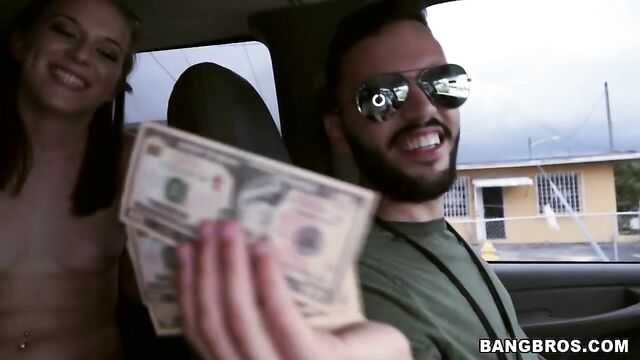 Description:The BangBus is back bitches! It's hot, it's sunny, it's Miami! We're out and about in the hood looking for some ass to fuck. We figured why not take a break from the beach and look for a sexy chick in the heart of Miami. Change is always good. After driving around for a bit, we finally found the perfect one. This white chick was sitting at the bus stop. We knew she didn't belong in the neighborhood, so we pulled up acting like we were the city transportation. She seemed to buy it until some Milf almost convinced her not to. Once we flashed the mula, sure enough she came along for the ride. Yes! This sexy brunette had a fat ass. We wanted to see it all. We gave her more money and net thing we know. She's on the BangBus twerking for dollars. Enough of that. We want this white girl to shake that fat ass on Bruno's thick cock. Come and see what Twerking on the BangBus will get you. Enjoy!